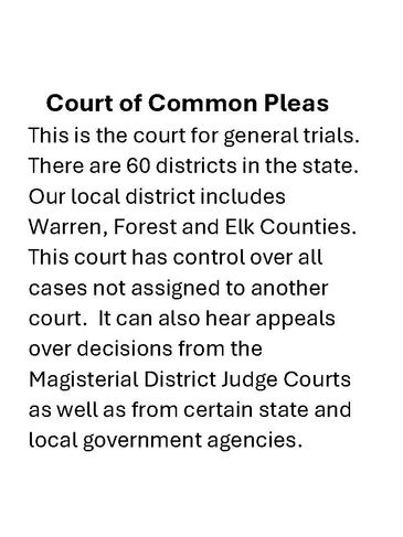 Region 2 includes the towns of Cherry Grove, Conewango, Deerfield, Eldred, Limestone, Mead, Pleasant, Sheffield, Triumph and Watson plus the boroughs of Clarendon & Tidioute